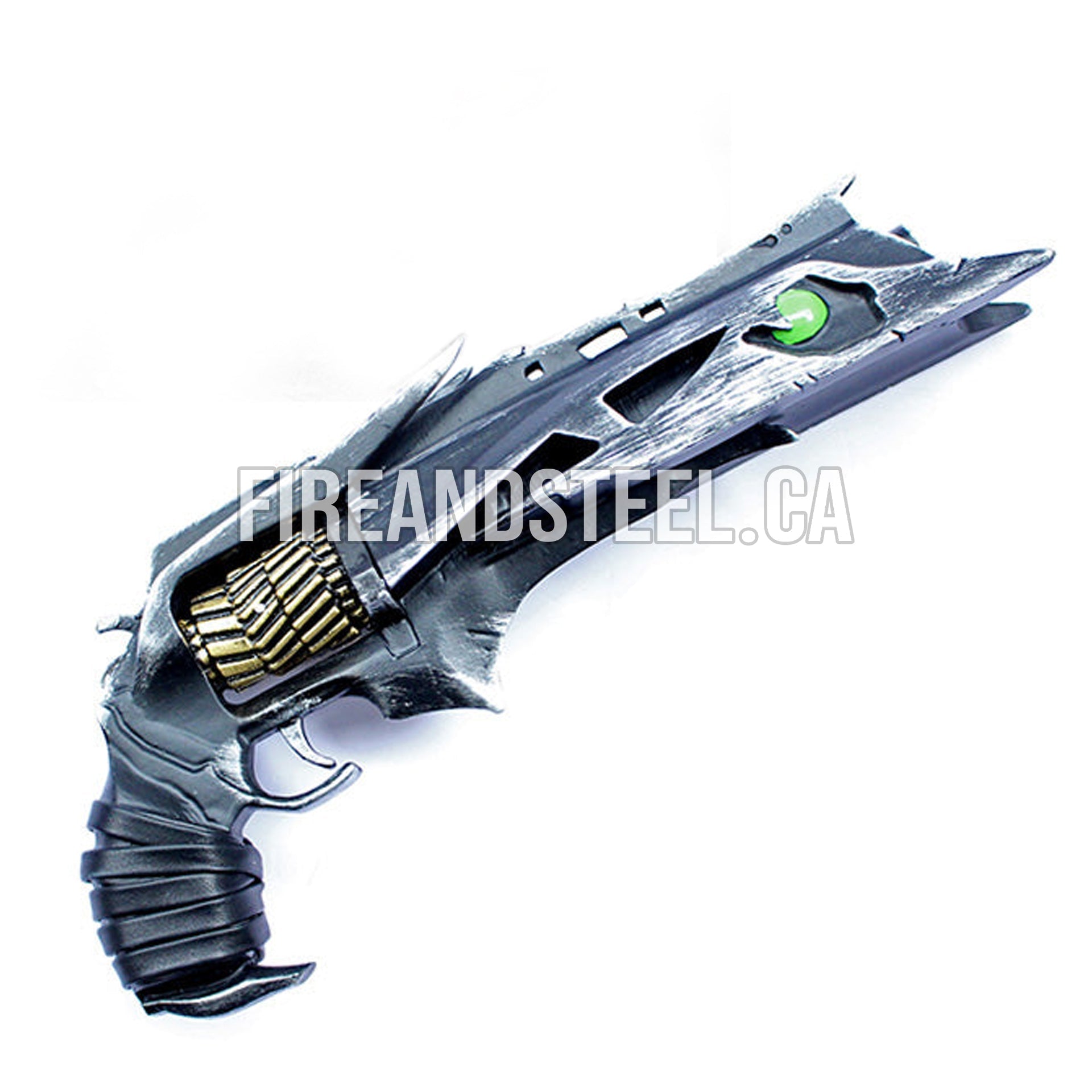 Our masterfully crafted replica gun is inspired by the Exotic Bristle Gun, including its uniquely spiked design and shape. This handmade quality resin replica is 38 cm (15 in) and comes with a display stand.