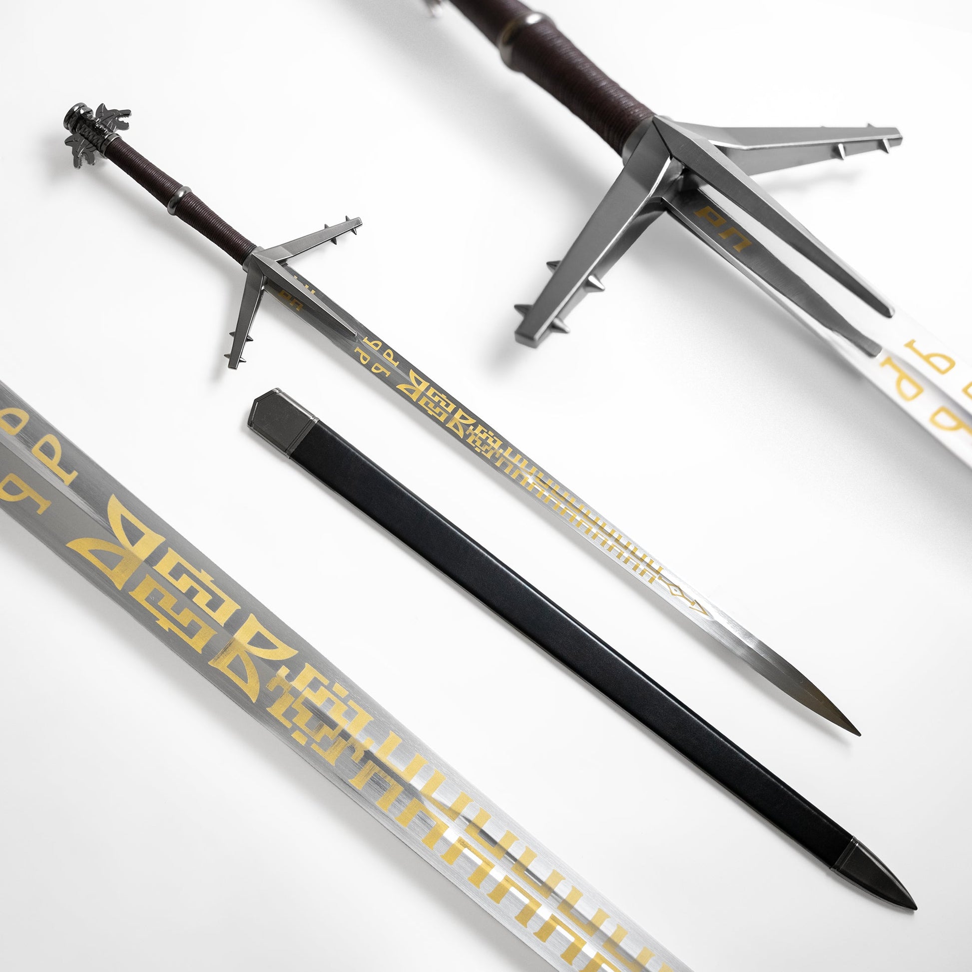 This real stainless steel decorative replica of the Witcher series silver sword called "Aerondight". This stunning sword is hand-crafted from high-quality stainless steel, and meticulously replicates the design of the original in-game weapon.