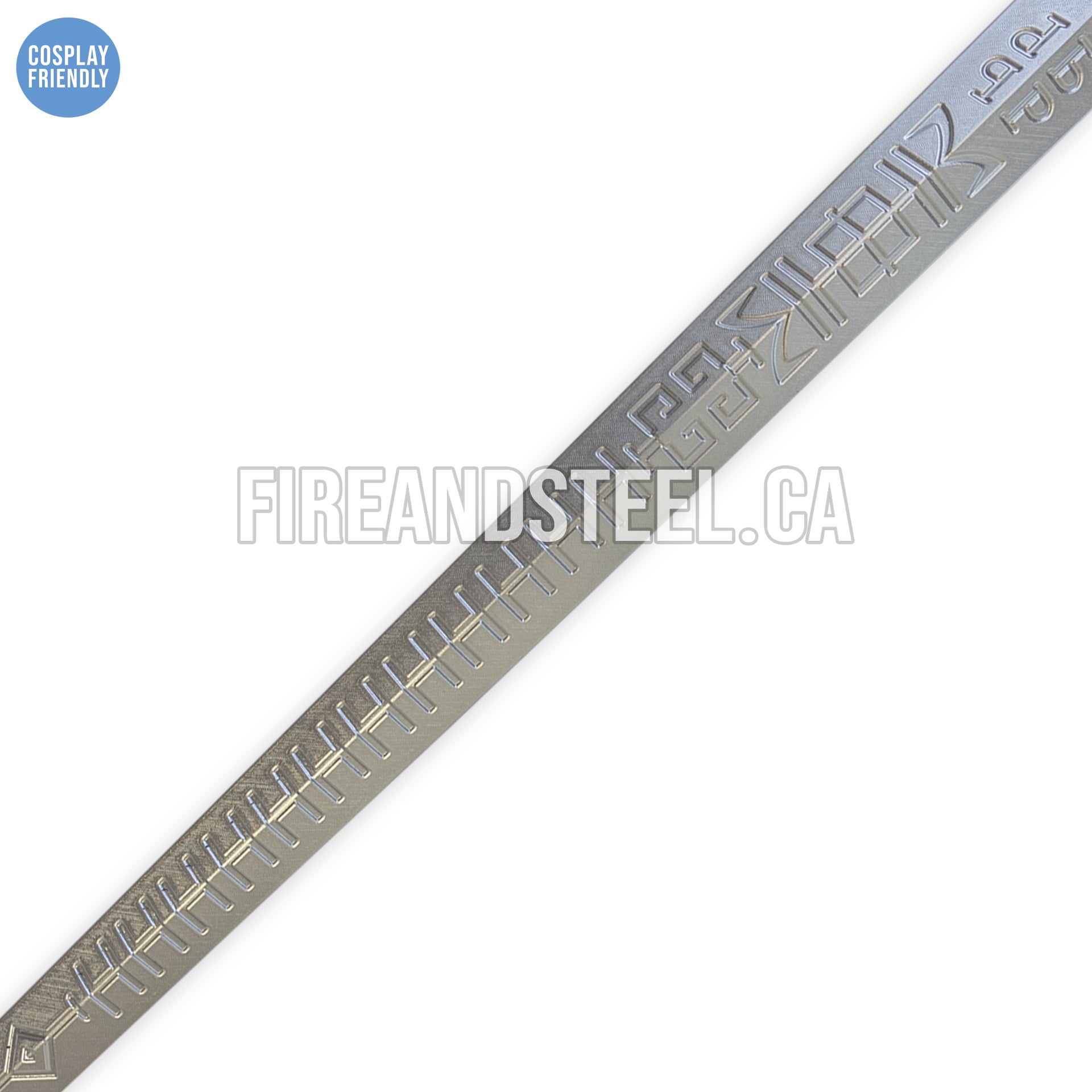 This replica sword features an engraved blade with intricate symbols, and an ornate hilt with beautiful details. It's perfect for displaying on your wall, in a display case, or as part of your cosplay costume.