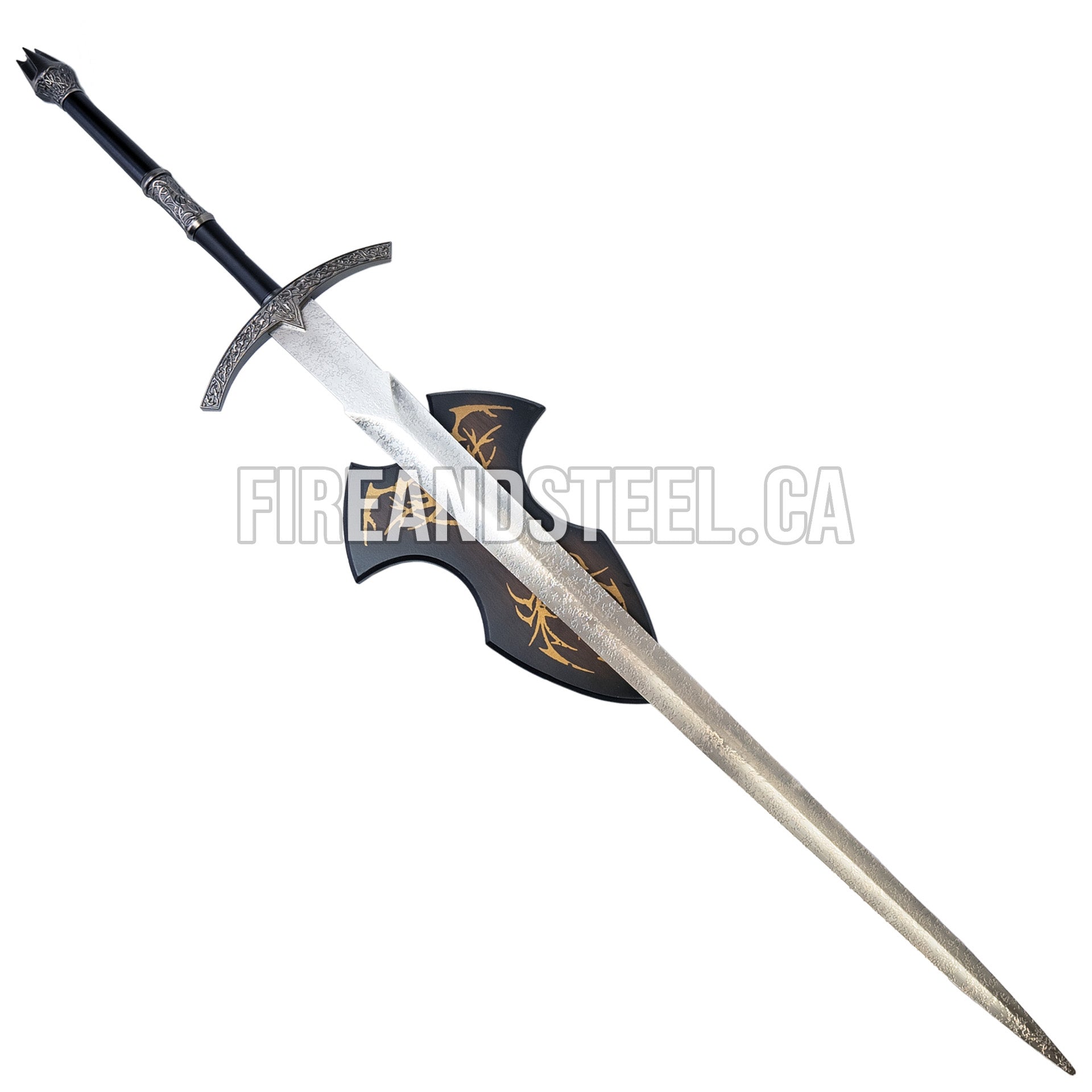 Our carefully crafted real sword is inspired by the Fallen King’s sword, including the iconic carbon steel blade and its unique guard. The 2nd edition is 137.5 cm in overall length. The blade is 99.5 cm long and 5.5 cm wide. The item comes with a wooden plaque (24.5 cm x 37 cm) for mounting. The blade is blunted and an ideal home decoration or cosplay photoshoot accessory.