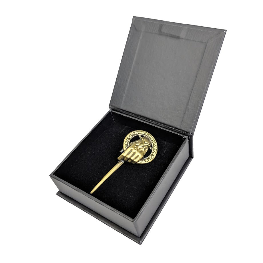 Our masterfully crafted real pin is inspired by the Royal Ward’s Pin, including the iconic hand symbol. This handmade quality zinc alloy replica of the Royal Ward’s Pin is 7 x 3 cm. It includes metal backing so it can be actually worn safely and comes in a magnetized Fire and Steel silver foil jewelry box.